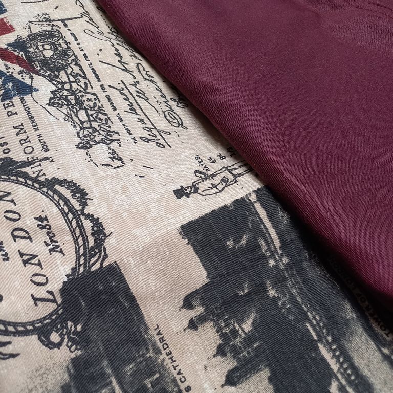Название получил благодаря комбинации однотонного материала и ткани с рисунком.