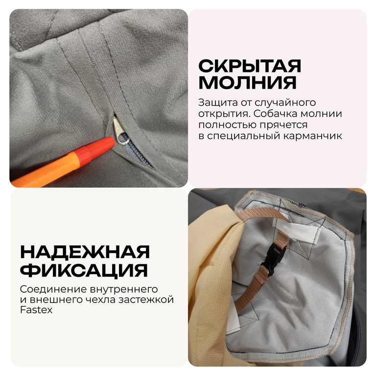Верхний чехол - съёмный на молнии.